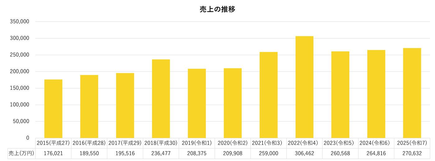 | 売上高 | 270,632万円 ※2025年8月期 売上の推移 |